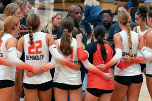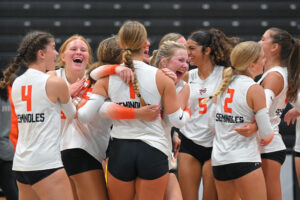After dropping their first set 19-25, the Seminole varsity rallied to win three straight and down the visiting Winter Springs Bears 19-25, 25-15, 26-24, 25-12 on Sept. 9.